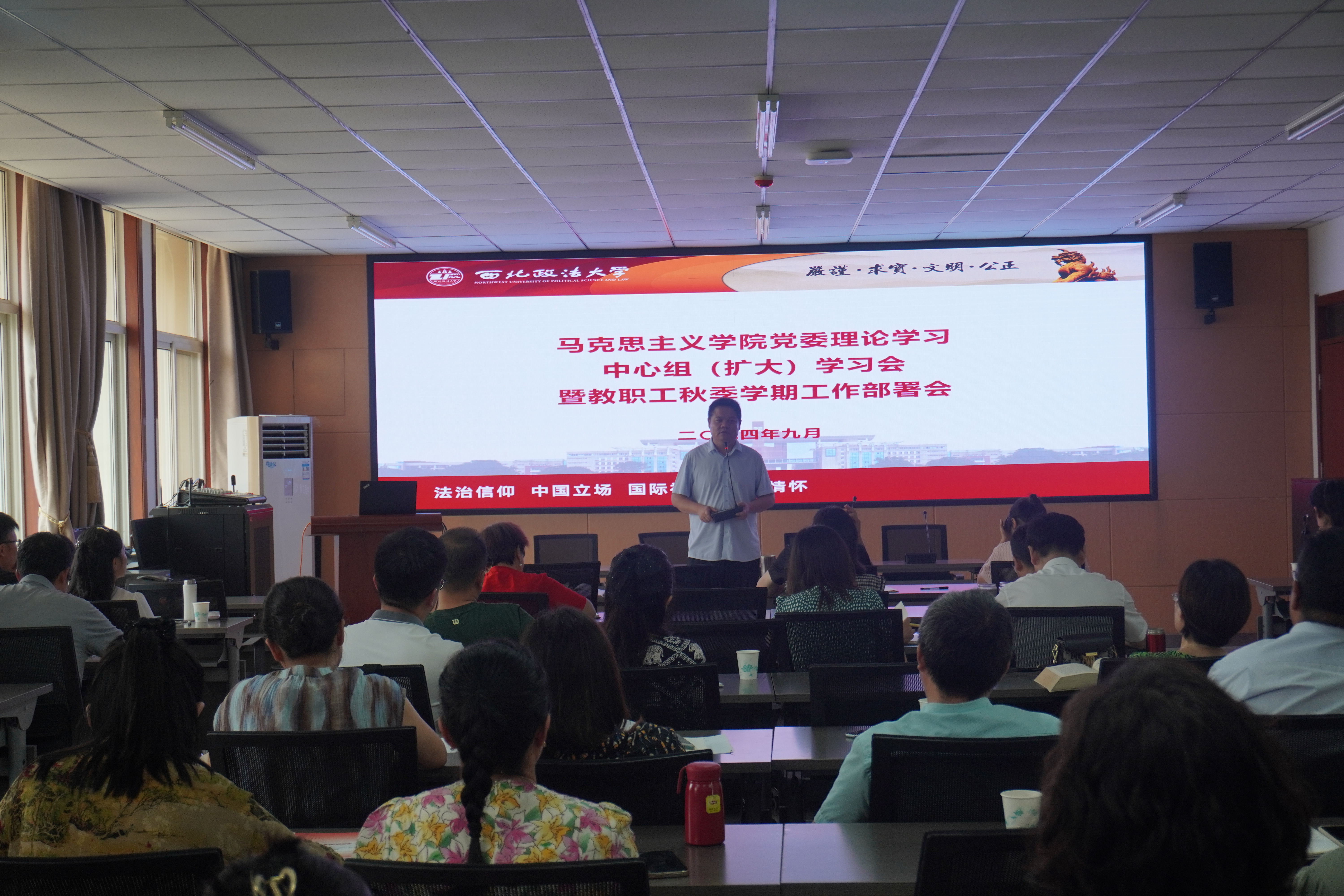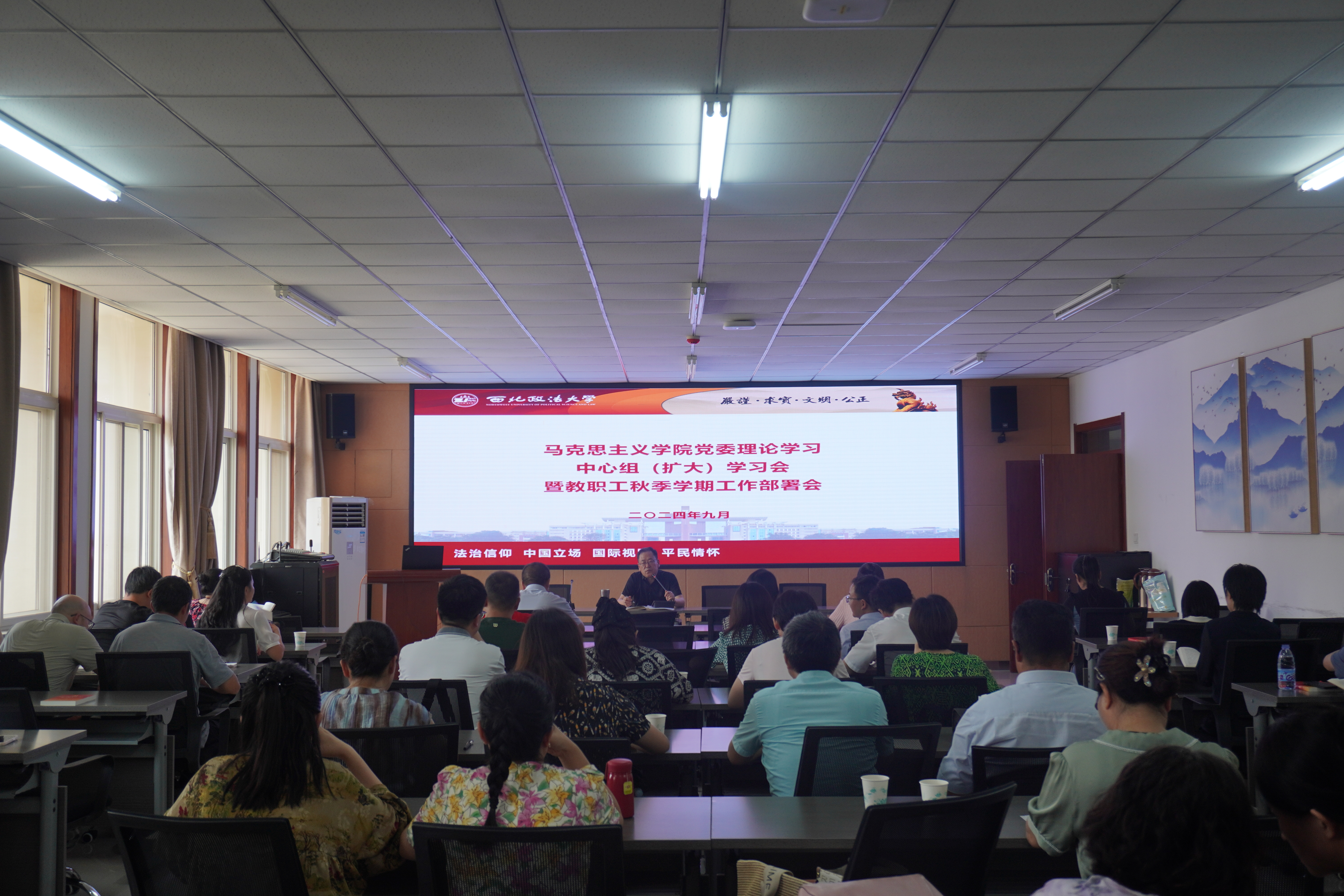 8月25日下午,9728太阳集团在会议室召开党委理论学习中心组(扩大)学习会暨教职工秋季学期工作部署会,研讨学习党的二十届三中全会精神和全省学校思政课建设座谈会精神,总结上半年工作完成情况,全面部署新学期重点工作。学院全体教职工参加本次会议,会议由学院院长魏奇主持。