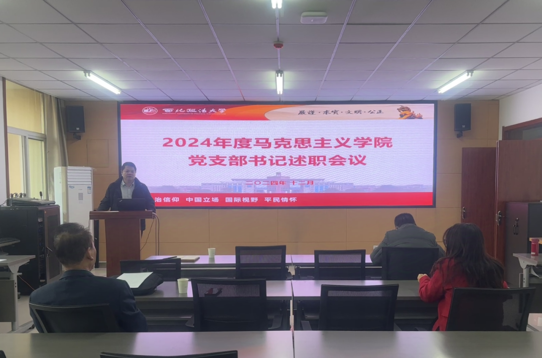 会上,马克思主义基本原理教研室党支部书记刘亚玲、马克思主义中国化研究教研室党支部书记赵金莎、中国近现代史纲要教研室党支部书记赵琳、思想政治教育教研室党支部书记李贵和行政党支部书记刘栩源分别作了述职报告。各党支部书记分别就本支部的党组织建设、理论学习、党员教育培养等工作情况及存在的问题和下一步工作安排进行了详细汇报。他们结合自身工作实际,深入剖析了存在的问题和不足,并提出了切实可行的改进措施和解决方案。与会人员经过讨论,对各支部党建工作进行了评定。各党支部书记述职完毕后,刘驰对本年度各党支部建设工作逐一进行点评,首先充分肯定了各支部这一年的工作成果,与此同时也指出了当下存在的问题,他要求各党支部要认真总结经验教训,切实强化自身建设,不断提升履职能力和工作水平,以推动学院党建工作再上新台阶。最后,会议对师德典范进行评选,旨在表彰优秀教师,树立师德榜样,激励全体教师不断提升职业道德和教育教学水平。