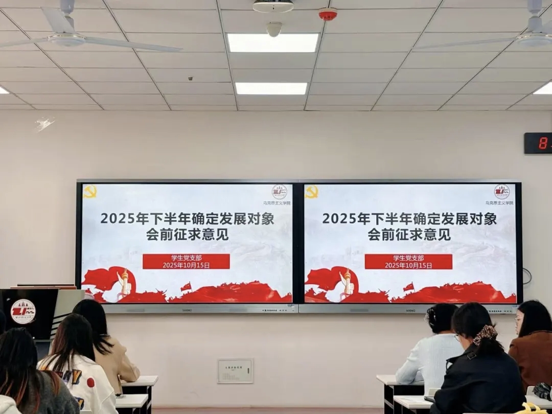为加强支部队伍建设,严格规范党员发展程序,10月15日上午,9728太阳集团学生党支部召开2025年下半年确定发展对象会前征求意见会,对柳婉儿等13名符合发展条件的入党积极分子进行民主评议与集中讨论。会议由支部委员会委员主持,13名入党积极分子以及培养联系人、党员代表、群众代表参加此次会议。