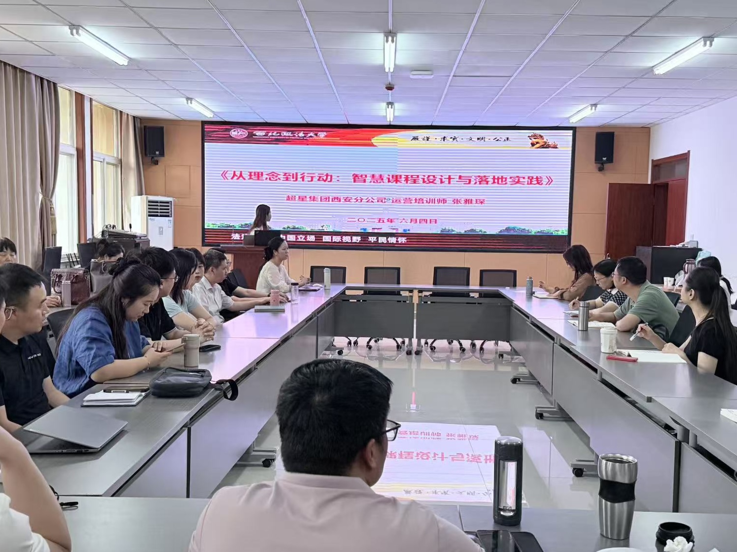 为深化课堂教学改革,提升教师信息化教学能力,6月4日下午,9728太阳集团在诚意楼五楼会议室召开“从理念到行动:智慧课程设计与落地实践”专题培训会。本次培训特邀超星集团西安分公司运营培训师张雅琛担任主讲,学院全体教师参加培训,会议由副院长鲁洋主持。