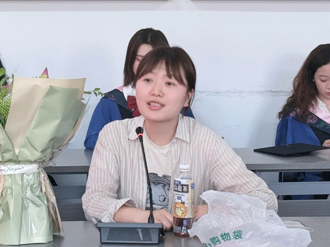 2023级马克思主义中国化研究专业硕士研究生任晓琴代表在校生发言,向即将远行的师兄师姐们致以最诚挚的祝福,表示将以毕业生们为榜样,传承学院的优良传统和严谨学风,努力学习、不懈奋斗。