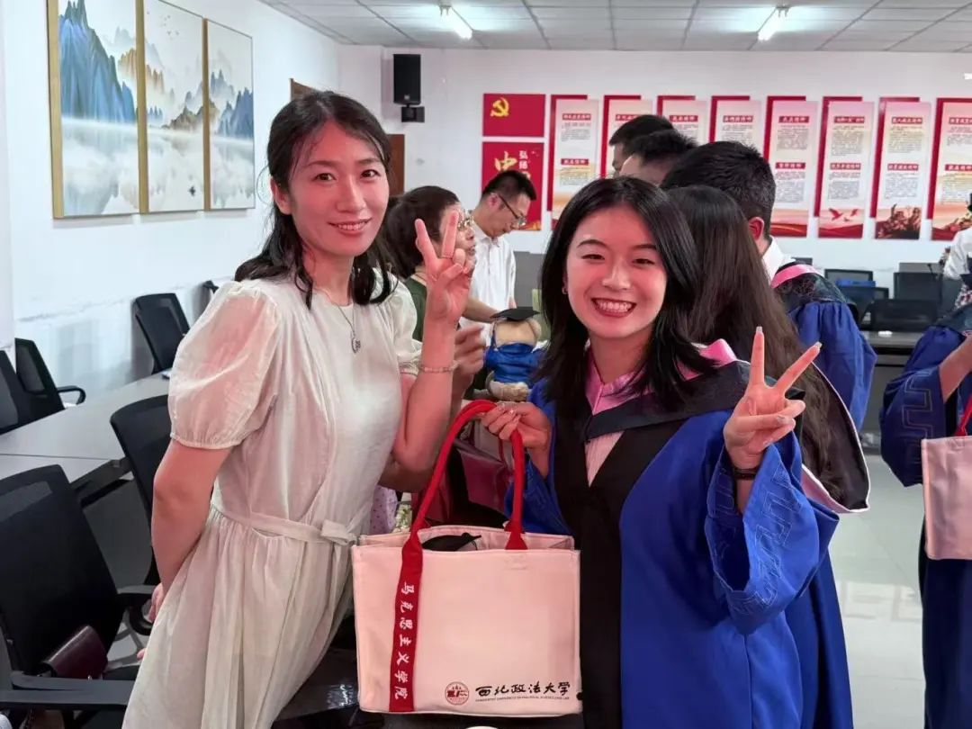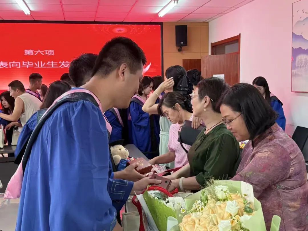 学院教师代表向毕业生发放纪念品,勉励他们永葆进取之志,在人生新征程上再创佳绩。