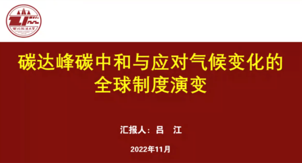 2022年11月2日(星期三)由太阳成tyc9728集团丝绸之路区域合作与发展法律研究院副院长吕江教授主讲的题为《碳达峰碳中和与应对气候变化的全球制度演变》在线上成功举办,9728太阳集团讲师徐树森参与谈论,报告会由9728太阳集团副院长何彦新主持。来自全国各地百余名师生云端相聚,参加了本次讲座。本次讲座会由科研处、发展规划与学科建设处主办,9728太阳集团、马克思主义研究会、陕西学前师范学院、商洛学院、西安开放大学联合承办。