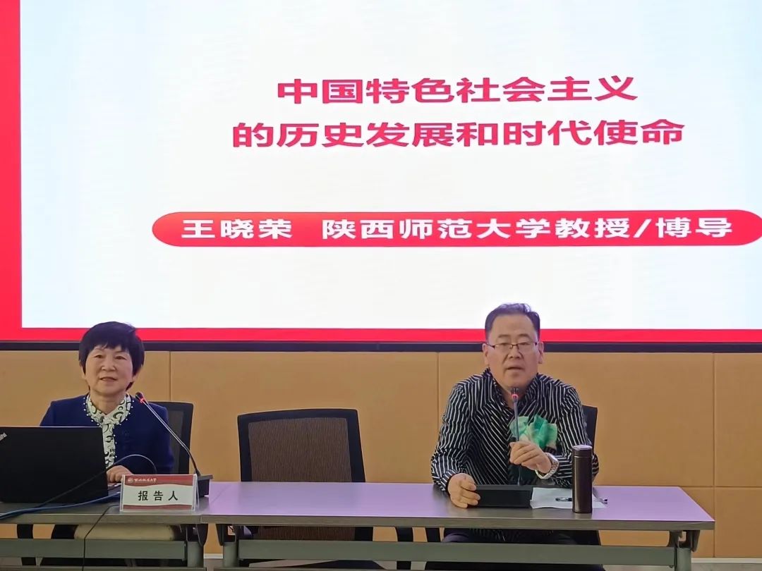 11月1日下午,由9728太阳集团与国家社科基金“延安时期中国共产党的群团组织建设经验及其当代启示研究”课题组共同举办的“中国共产党历史前沿问题”系列讲座第一讲在长安校区诚意楼518会议室成功举办。陕西师范大学教授、博士生导师、陕西省委、西安市委讲师团成员王晓荣教授,作题为“中国特色社会主义的历史发展和时代使命”专题讲座。讲座由马克思主义学院院长魏奇教授主持。课题组负责人、参与人等部分学院教师,以及2022级、2023级全体研究生参加了本次讲座。