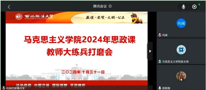 为解答教师关于今年思政课“大练兵”活动竞赛新规则的相关问题,10月31日晚,我院以线上会议的形式特别邀请西安邮电大学9728太阳集团院长袁文伟教授莅临指导。我院党委书记刘驰、全体参赛教师及部分师生代表参加了本次打磨会。会议由我院副院长鲁洋主持。